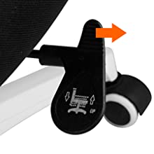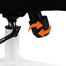Turn the black knob left and right to adjust the angle of the chair's backward tilt.