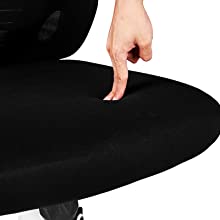 COMFORTABLE & DURABLE MATERIAL: The seat with high-density thick foam which has good elasticity that is difficult to deform to keep comfortable for long hours. Sturdy 5-star base and thickened nylon smooth-rolling casters for great stability and mobility to help promote a more comfortable seated position, and won't scrape or scratch flooring surfaces.